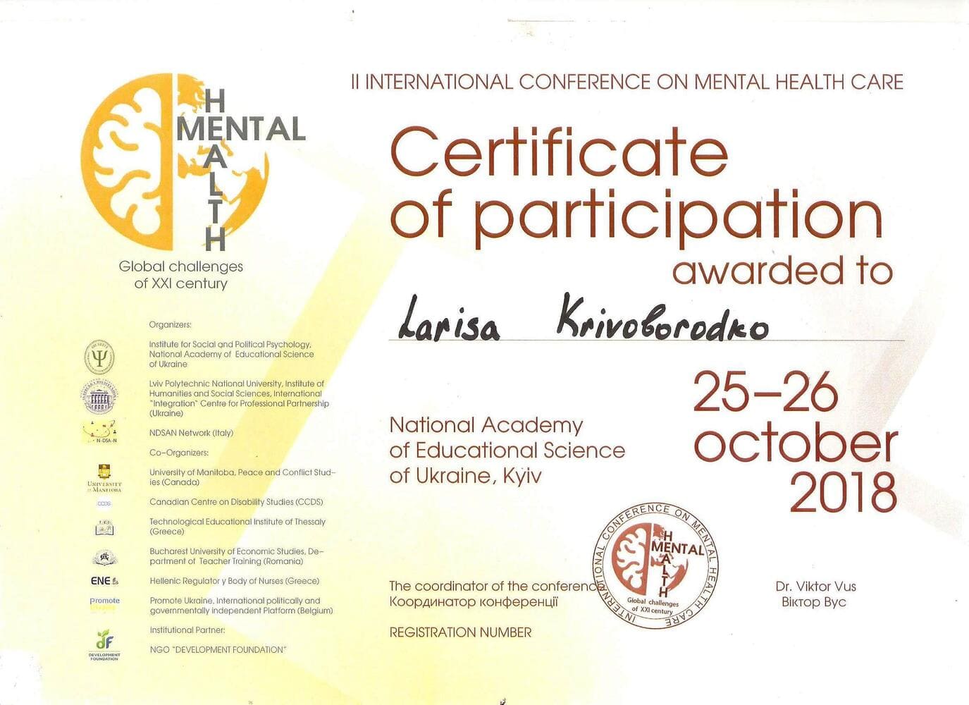 На даний час досягла позитивних результатів надання психологічної допомоги понад 700 задоволеним клієнтам.