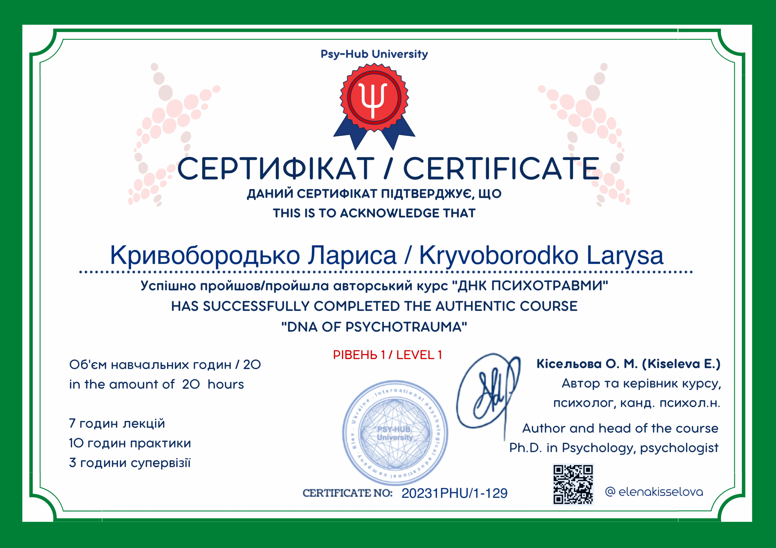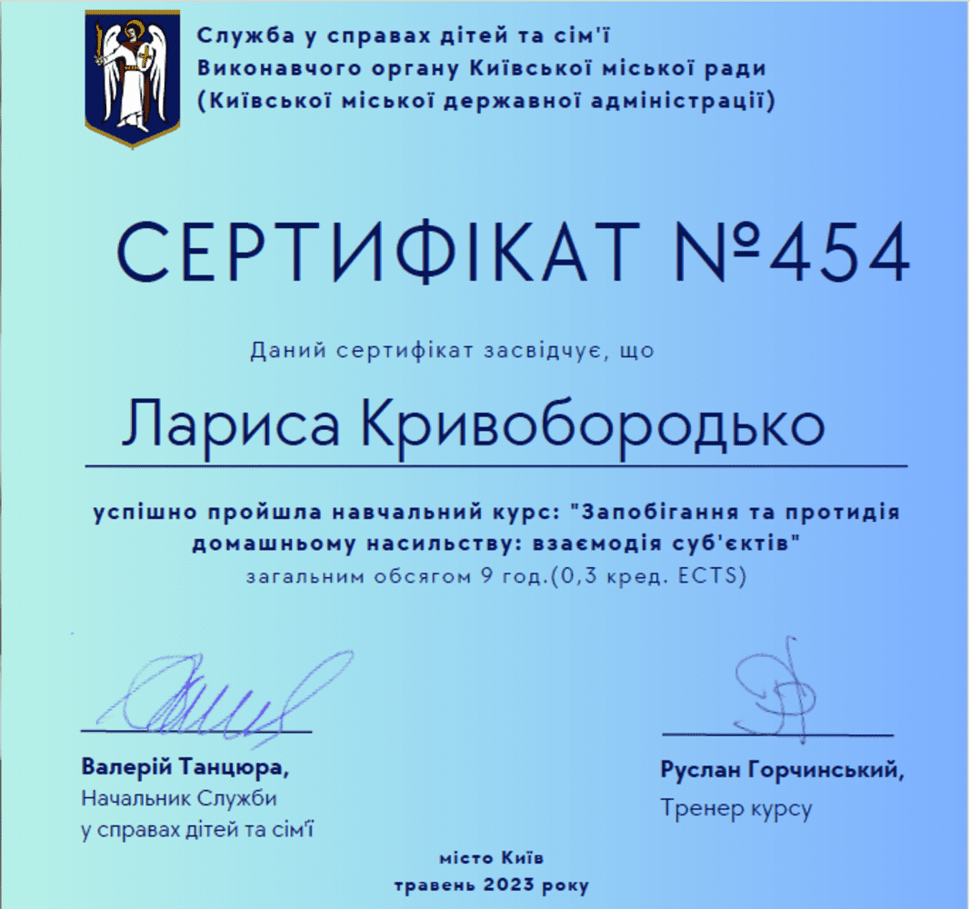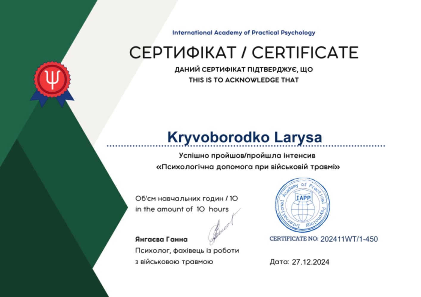 У 28 років я отримала другу вищу освіту і змінила статус фінансиста на статус психолога, закінчивши на “відмінно” факультет психології Національного авіаційного університету м. Києва.